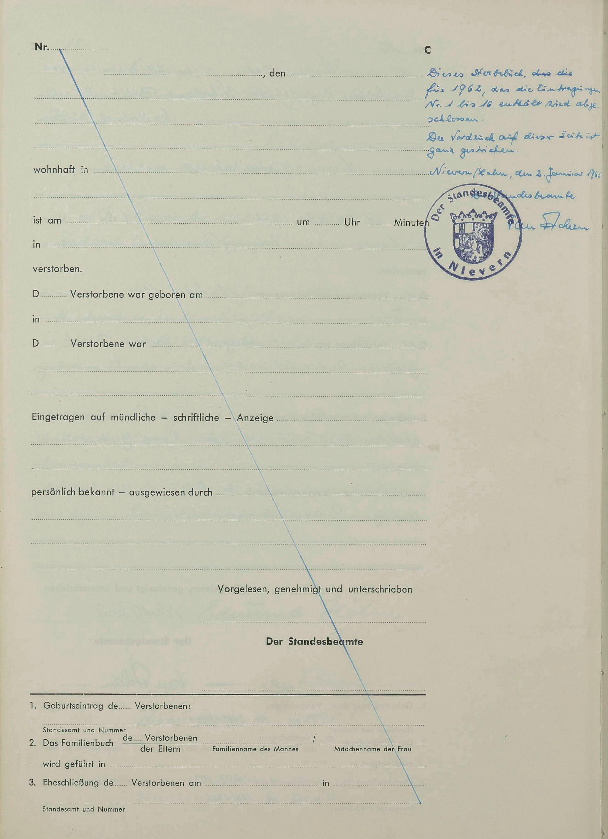 292/14: Sterberegister 1962