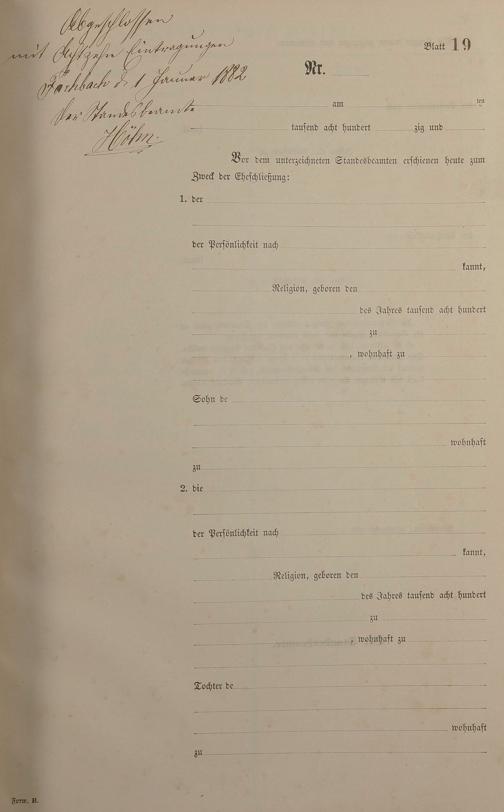 Heiratsregister 1881