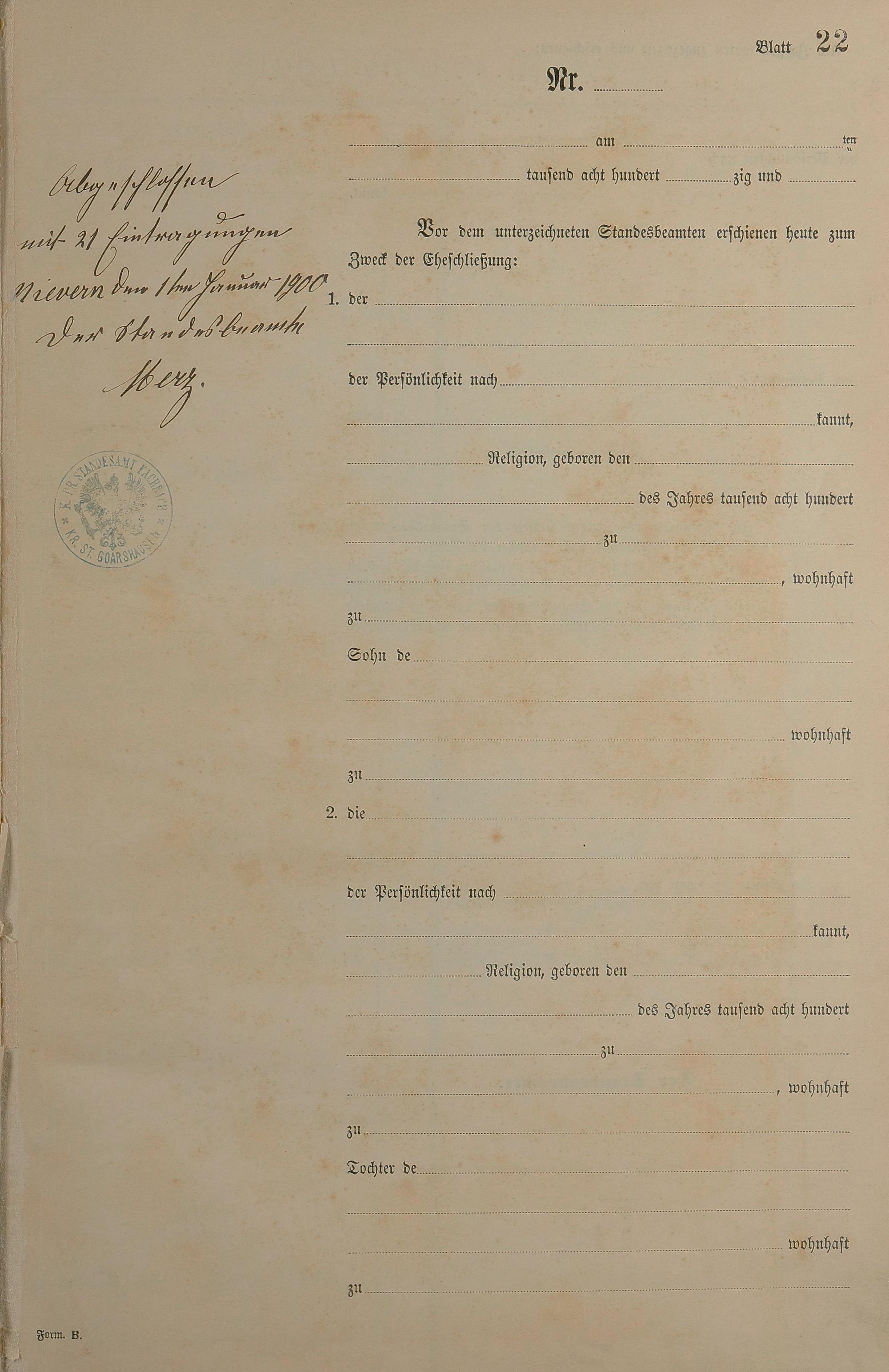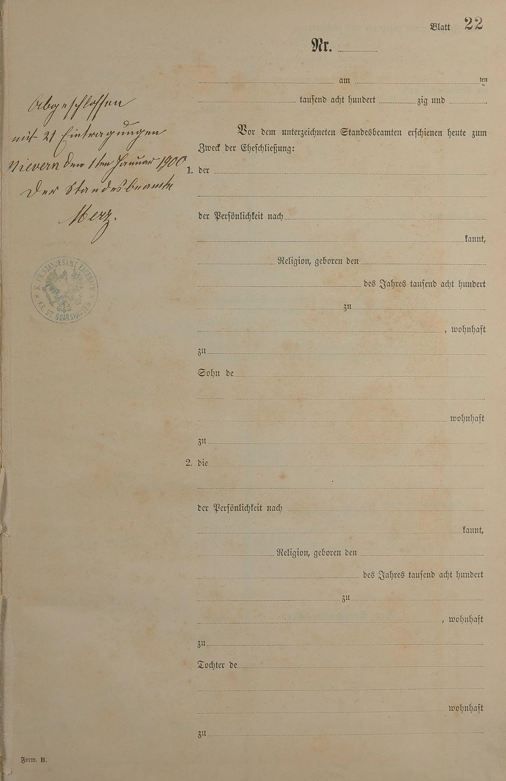 Heiratsregister 1899