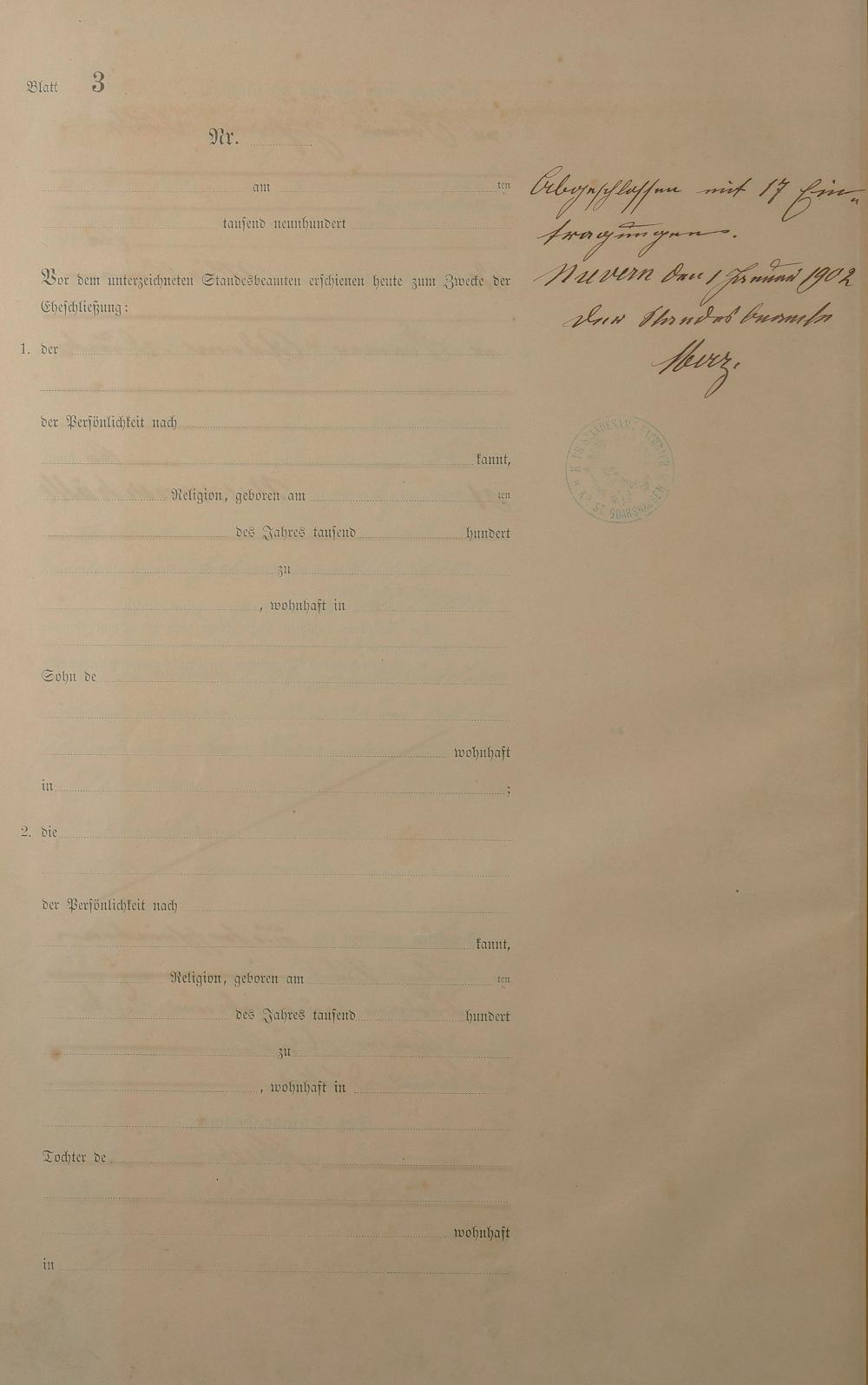 Heiratsregister 1901