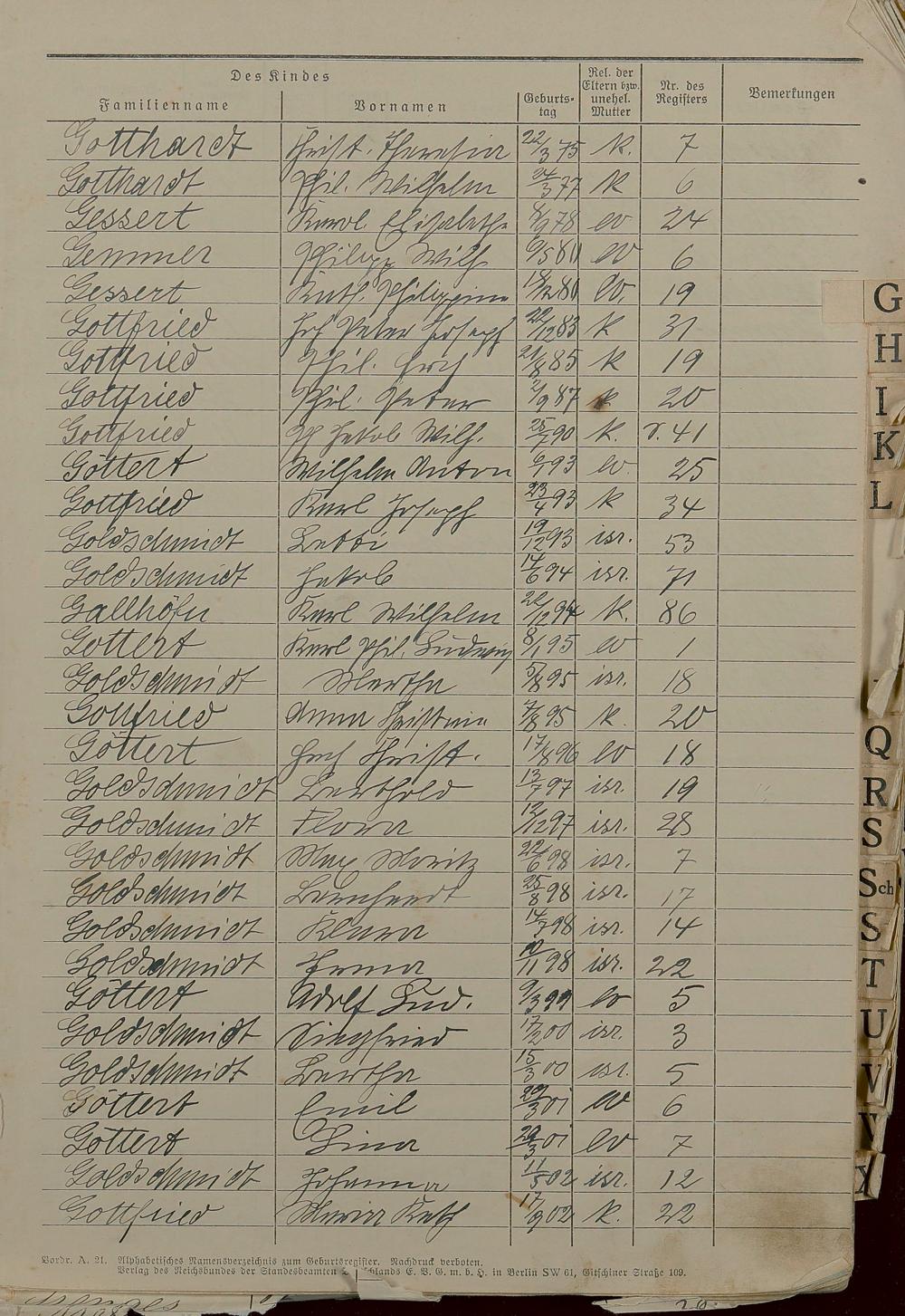 Geburtsregister 1874-1951 - Register A - Z