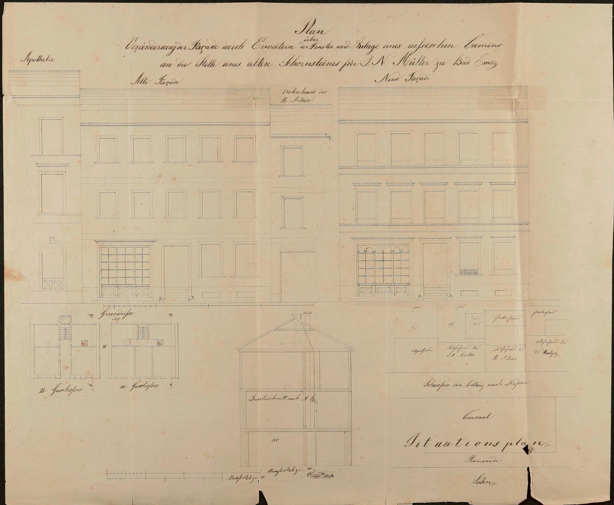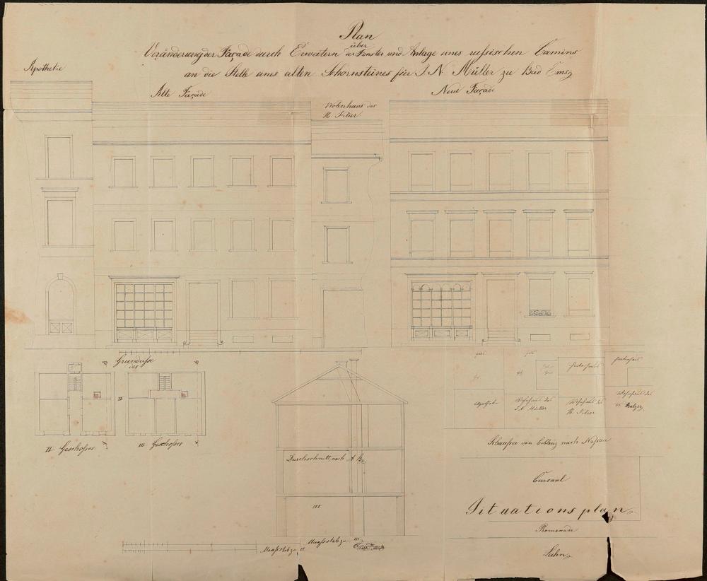 Fassadenänderung und Kamin des Hotels "Zum Adler"/"Nowack-Haus" des Nicolaus Müller/Adolph Müller/Max Nowack/Johanna Nowack geb. Müller/Hedwig Nowack/Dr. Wilhelm Nowack Bad Ems Römerstraße Nr. 9 Flur 87 Nr. 1