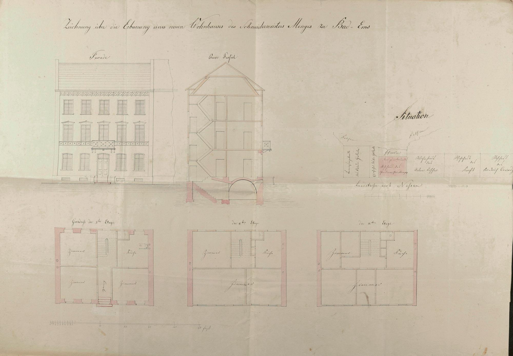 Wohnhaus "Rolandseck" des Friedrich Menges/Philipp Schäfer/Joseph Lanio//Gustav Moser und Lina geb. Nollstadt/Auguste Berkofsky geb. Moser/Lütger Lange/Dr. med. Emmi Heybrock-Selff Bad Ems Adolf-Hitler-Straße Nr. 27/Lahnstraße Nr. 27 (24) Flur 84 Nr. 48, 49
