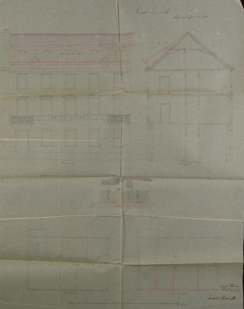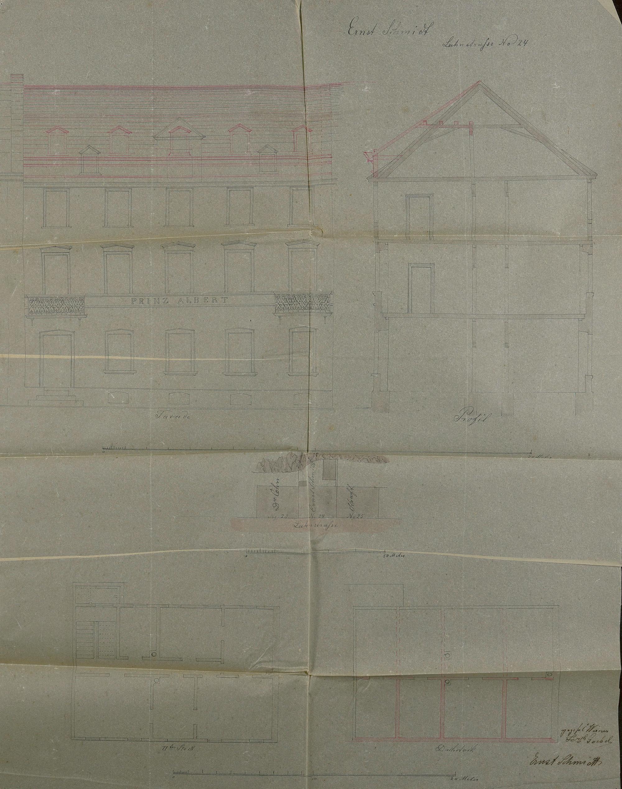 Fassadenänderung des Hauses "Zur Felsenburg"/"Prinz Albert" des Ernst Schmidt/Joseph Bockwinkel und Anna geb. Bommersheim/Eugen Zintel und Ottilie geb. Stadtfeld Bad Ems Lahnstraße 28 (25) Flur 84 Nr. 51